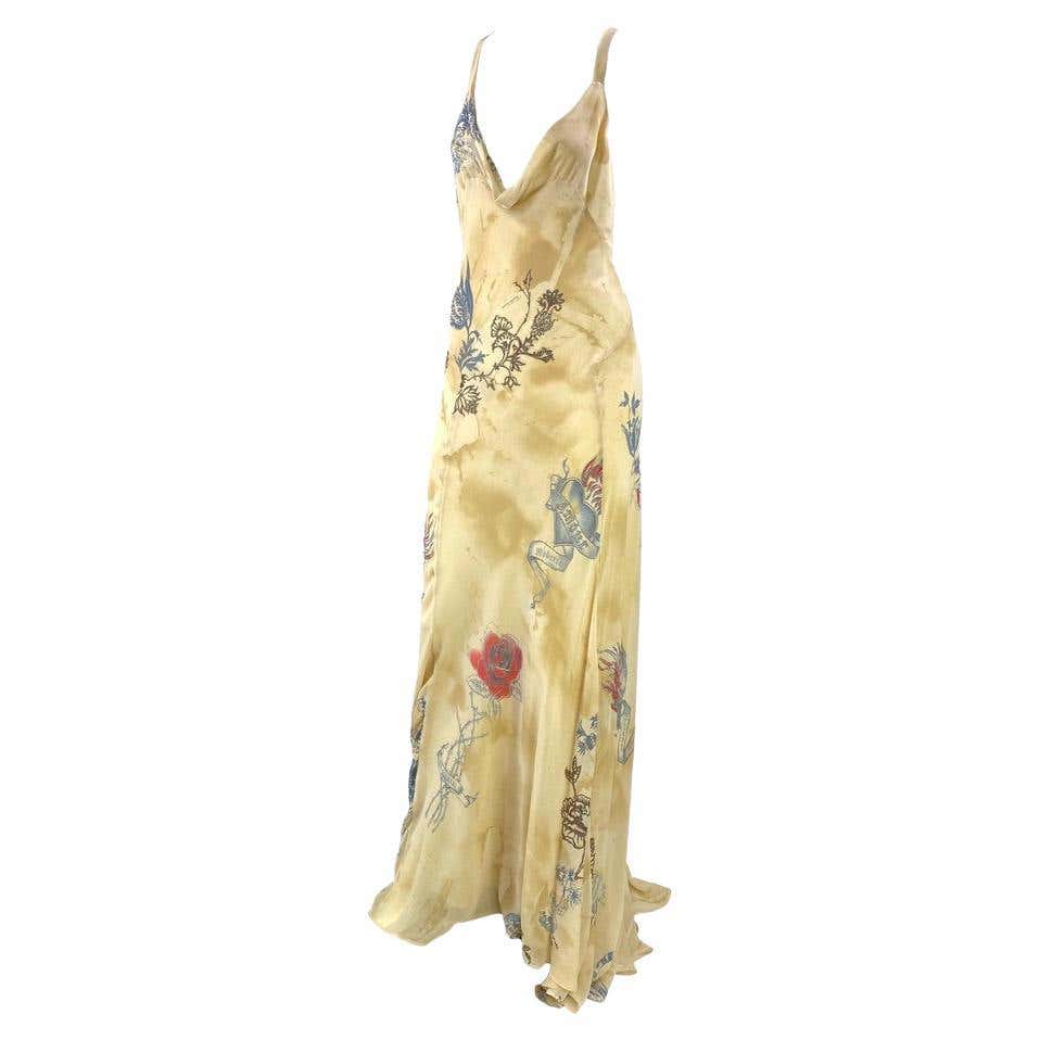 S/S 2003 Roberto Cavalli Tattoo Print Backless Chiffon Gown