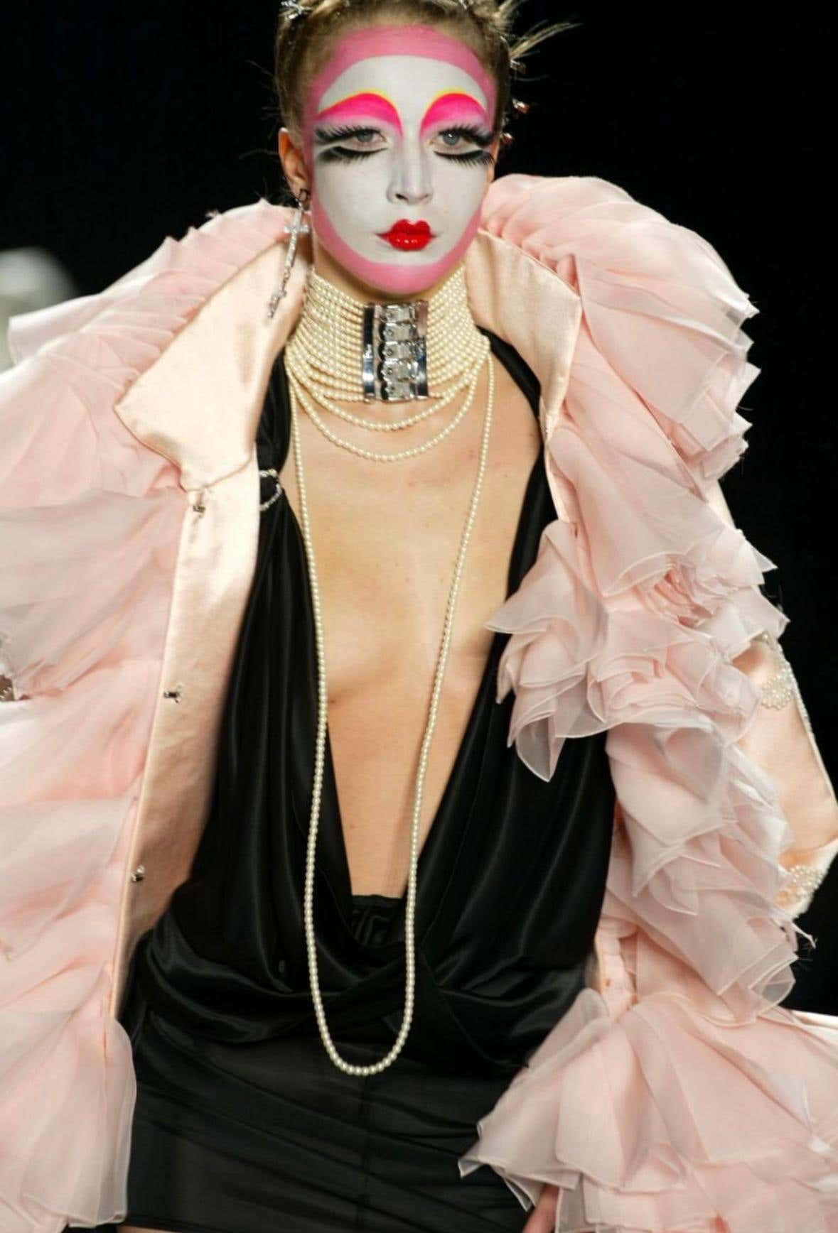 Не могла это не выложить! Платье из этой коллекции (моей самой любимой из коллекций Гальяно для Диор!), вдохновленной Японией, киберпанком, театром кабуки, есть и у меня и я безумно люблю его. Это очень смелая и эффектная вещь... Так что этот образ с подиума вы просто обязаны увидеть! Совсем другая эстетика, другой взгляд на то, каким может быть короткое черное платье на бретельках...!