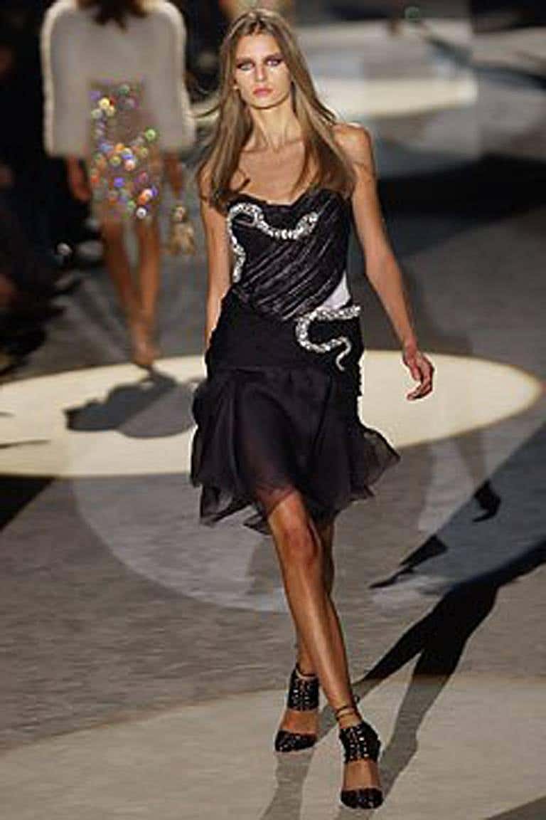 Vintage 2004 Gucci by Tom Ford Runway Black Silk Crystal-Snake Finale Dress