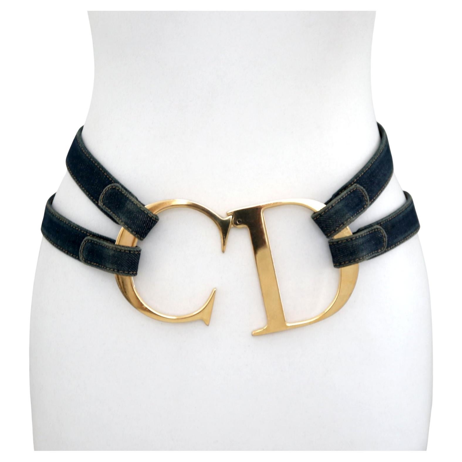 2000 Giant Gold CD Logo Denim Belt by John Galliano