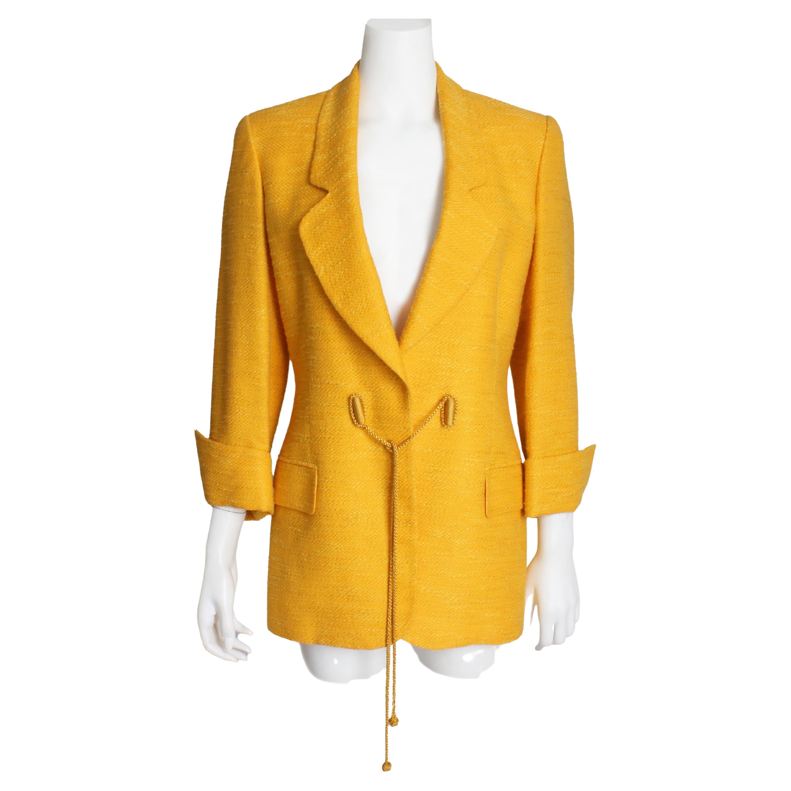 Gianfranco Ferre Jacket Canary Yellow Cotton Blend Knit Golden Rope Ties Sz 42